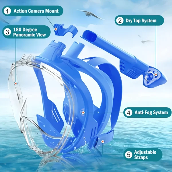BREATHE FREELY AND SAFELY: Its full-face design allows you to breathe comfortably through your nose and mouth while diving. Using advanced anti-leak technology, this maximizes safety and ensures you breathe in fresh air every time you breathe.